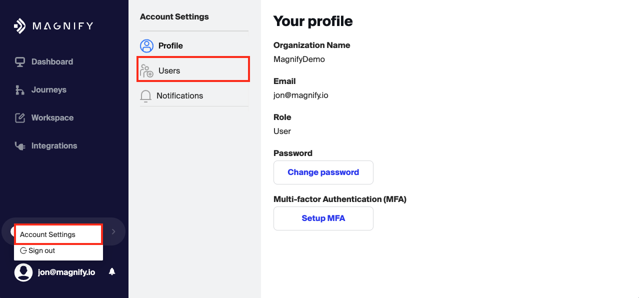 | Super Admins | Ability to add integrations and users. Contact support@magnify.io to give a user this role |