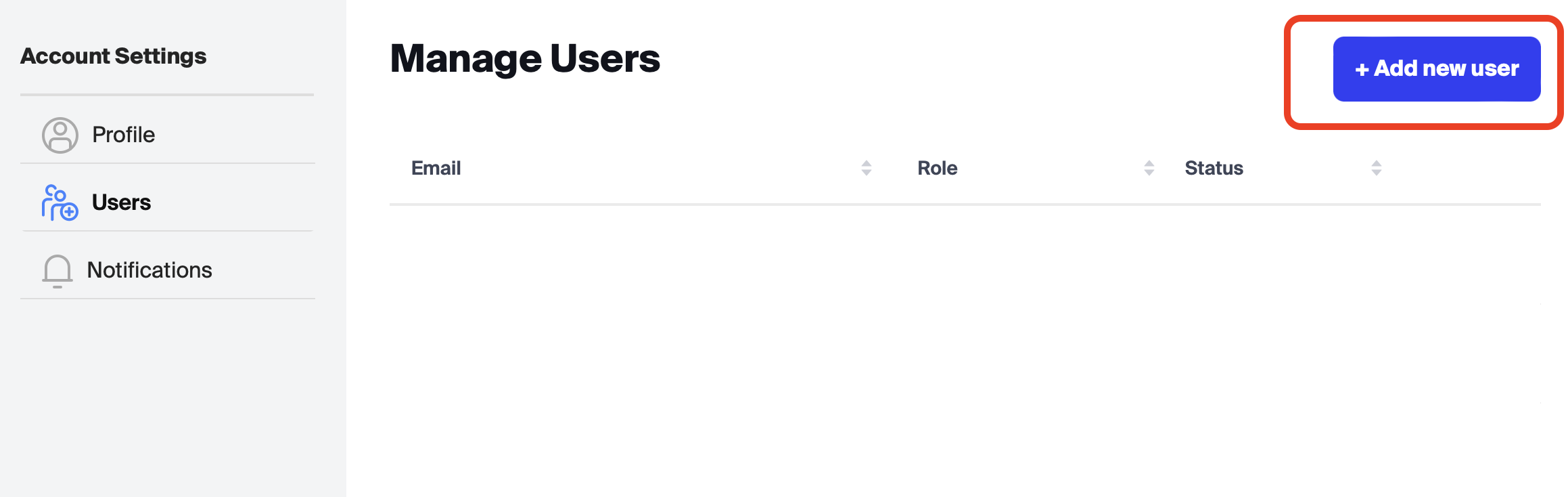 1. To add a user, navigate to Account Settings by hovering over your username in the lower left corner of the screen, then click Users.