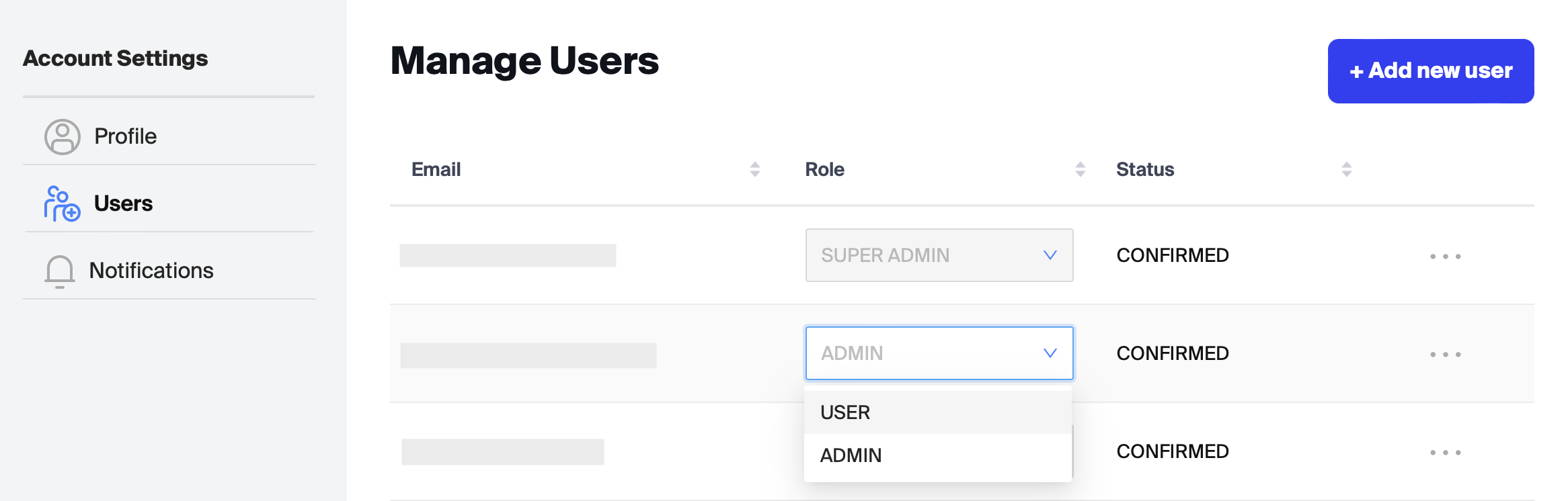 1. To edit a user’s role, navigate to Account Settings by hovering over your username in the lower left corner of the screen, then click Users.