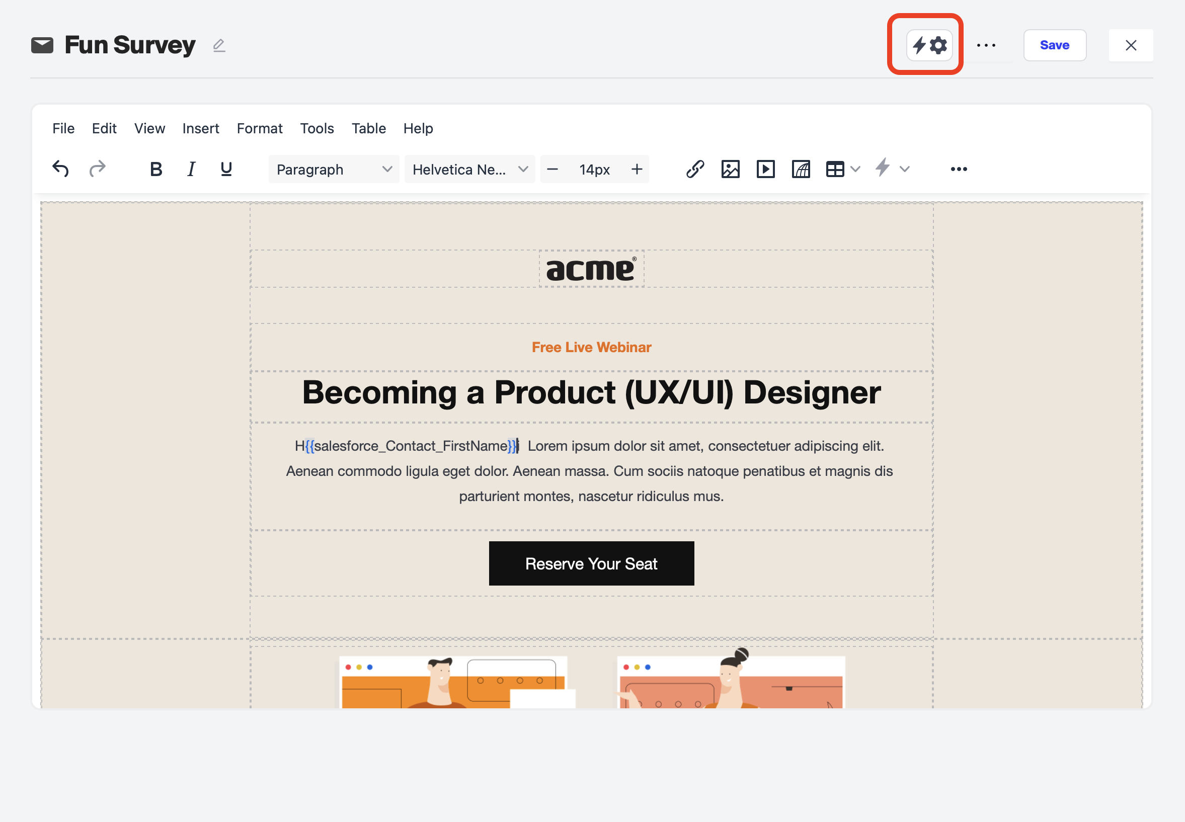 As part of a new campaign, Acme Corp edited their WelcomeEmail template for a defined period. To make sure they did not update every future customer, they selected the existing WelcomeEmail template, clicked “Save as new email” and named it WelcomeEmail_CampaignXYZ, and made edits.